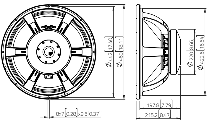{18″ – 1200 W – 96.5 dB – 8 Ohm }